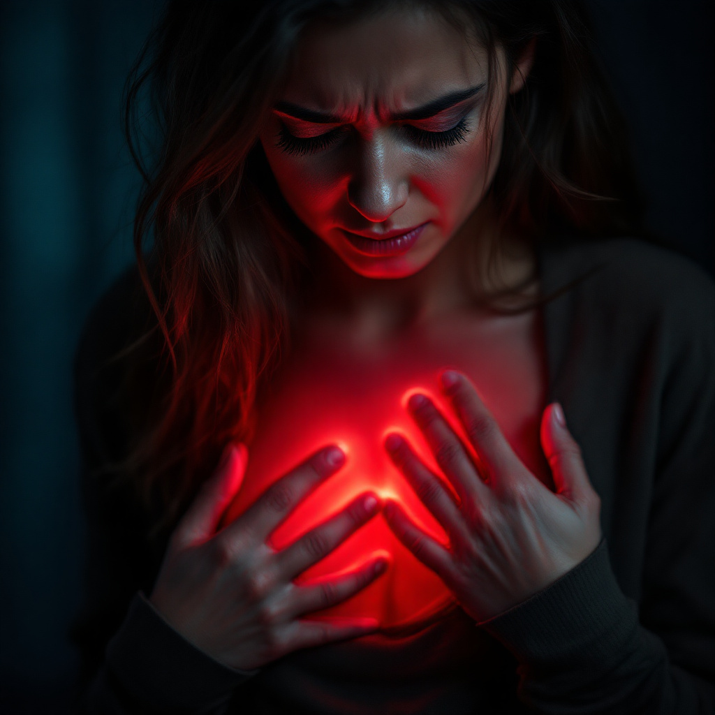 - 가슴 중앙 또는 왼쪽에서 느껴지는 무거운 압박감, 쥐어짜는 듯한 통증이 특징적입니다.
