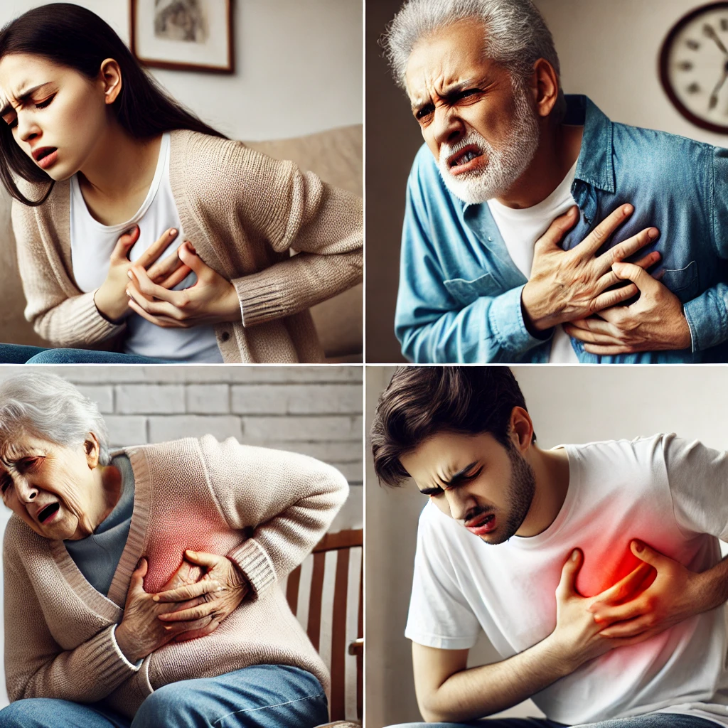 - 주요 증상: 가슴 압박감, 왼쪽 겨드랑이 통증, 숨이 찬 느낌, 식은땀.