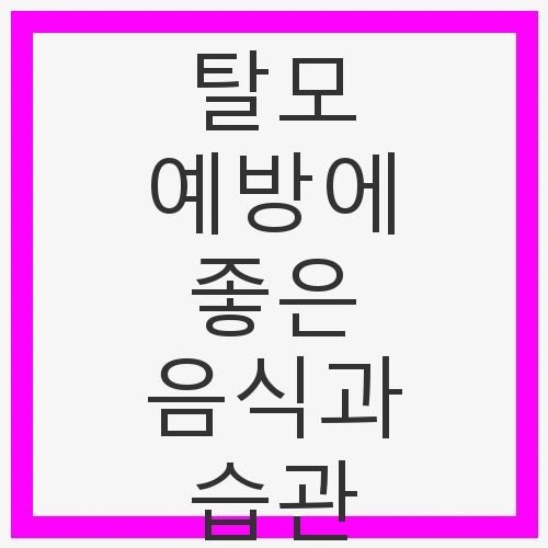 탈모 예방은 단순히 특정 음식을 먹는 것으로 해결되지 않습니다. 우리는 식습관을 개선하고, 스트레스를 관리하며, 충분한 수면을 취하는 등 여러 가지 습관을 함께 실천해야 합니다. 이러한 작은 변화들이 모여 건강한 모발을 유지할 수 있게 도와줍니다. 따라서 자신에게 맞는 방법을 찾아 꾸준히 실천해 보세요. 건강한 모발을 위한 첫걸음이 될 것입니다.